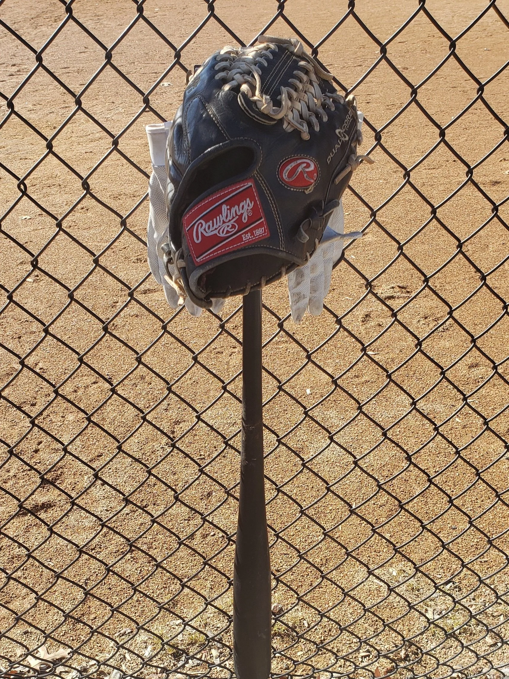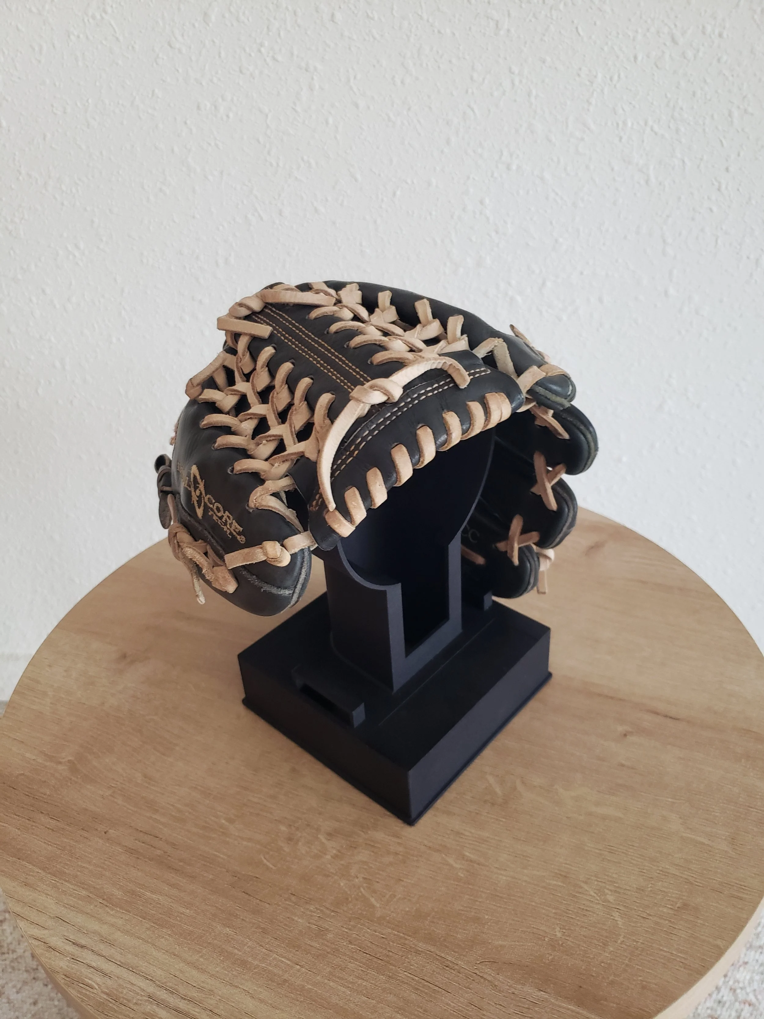 Glove Guru easily moves from a flat surface to hanging from a chain link fence to keep your glove supported